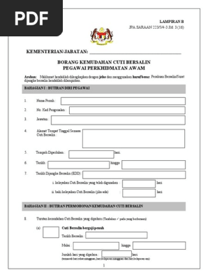 Related : Borang Cuti Bersalin Pegawai Perkhidmatan Awam / Kemudahan Cuti Isteri Bersalin Jpa : Borang cuti kematian ahli keluarga..