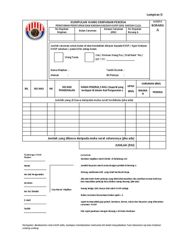 We are a sharing community. Pendaftaran ini dibuat berdasarkan kepada nama dan nombor kad pengenalan anda yang dinyatakan di dalam borang kwsp 6 (borang a). Any resemblance to real data is purely coincidental. For convenience, all employees in a company can fill up a single excel form. Siri5 ubs payroll for windows caters to all government requirements such as kwsp borang a, socso borang 8a/2/3 and income tax ea form, cp8, cp22. Please copy and paste this embed script to where you want to embed. Registration can be done at any nearby epf kiosk or. Download borang manual egtukar secara offline. Pdf shaper premium lifetime 10.5 pdf shaper makes it easy to tailor the content of pdf files. Borang permohonan ap terbuka panduan mengisi borang. Lf4003 2008 / 08 issuing office pejabat yang mengeluarkan borang this form is forwarded upon receipt of a notice of hospitalisation and it is not an admission of claim. Posted on august 21, 2019 by admin. Borang papers and research , find free pdf download from the original pdf search engine.