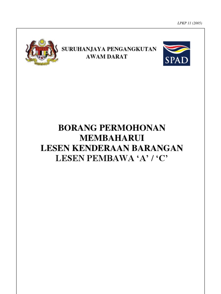 Borang Permohonan Spad Gov My Laporan Pemeriksaan Awalan Pg11a Bagi Kelas Lesen Pembawa A from demo.pdfslide.net Tempoh kuatkuasa lesen dan had usia kenderaan perdagangan. Borang permohonan boleh di muat turun disini. Jabatan pengangkutan jalan malaysia borang permohonan lesen vokasional (i) sila baca panduan di muka sebelah sebelum mengisi boring ini (ii) ruangan ini untuk permohonan baru atau penambahan kelas lesen vokasional sahaja tarikh luput lesen vokasional (jika ada). Borang ubahsyarat lesen (lpkp 21). Jawapan saya boleh, anda boleh masuk kod bidang rumah yang dikhaskan oleh mof. Panduan permohonan penggunaan kenderaan uitm. Borang permohonan ini hanyalah terpakai bagi kenderaan yang didaftarkan sebelum 1 januari 2017. Pendaftaran ahli baru ncr nota: